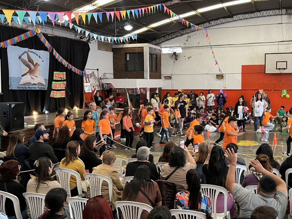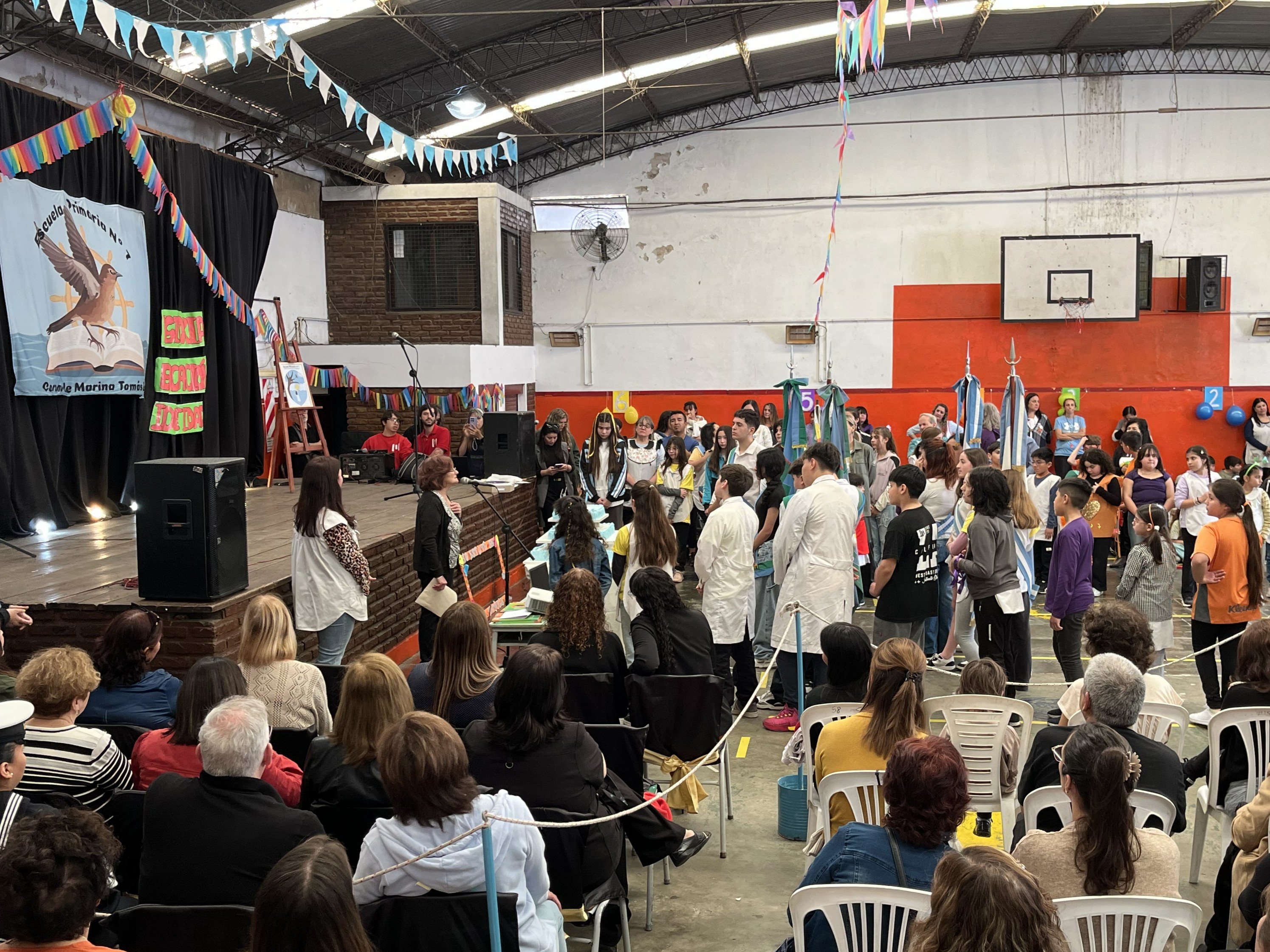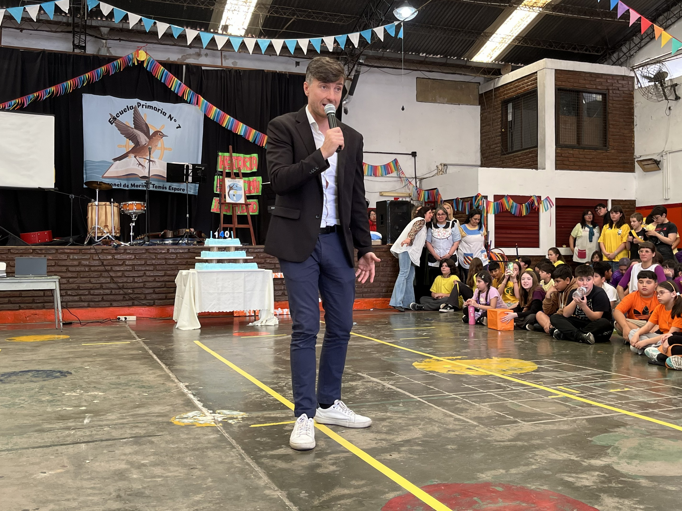 Por: Leandro Fernández Vivas.El festejo incluyó un acto central en el gimnasio, con presencia de autoridades educativas, representantes de entidades locales y figuras del ámbito institucional. La comunidad escolar presentó por primera vez la bandera de la escuela, con un hornero como símbolo central, y el escudo oficial, diseñado por estudiantes. También se descubrió una placa conmemorativa y se compartió la tradicional torta de cumpleaños.