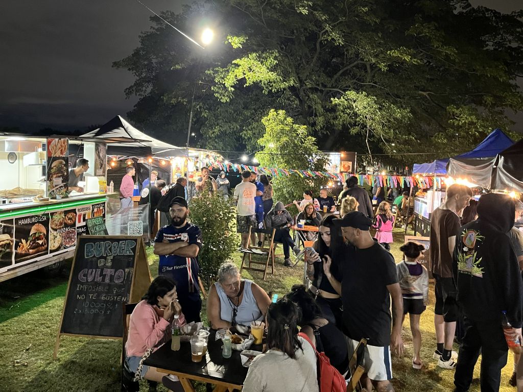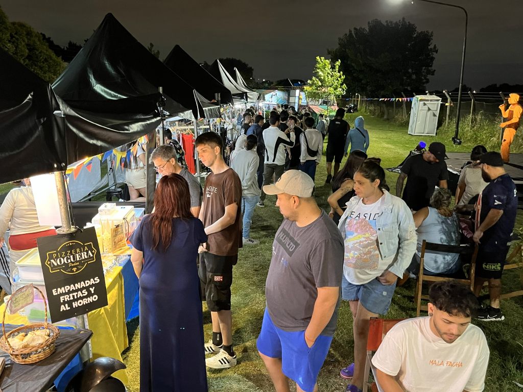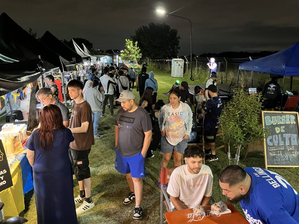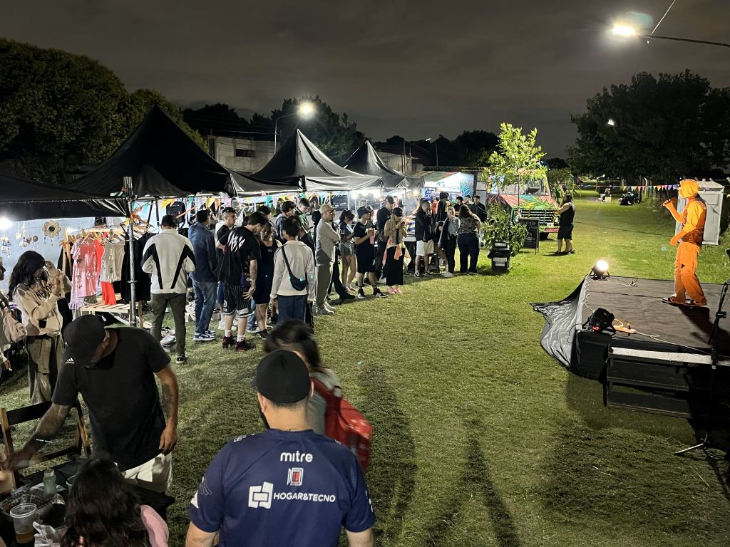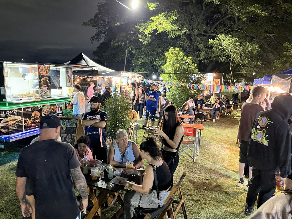 El viernes marcó el inicio del evento con la apertura del patio gastronómico, los espacios de diseño y los stands de emprendedores. La convocatoria superó la cantidad de mesas y sillas dispuestas, por lo que la organización brindó mantas y se generaron picnics nocturnos espontáneos en la plaza. También hubo actividades para las infancias, con inflables y propuestas vinculadas a Papá Noel.