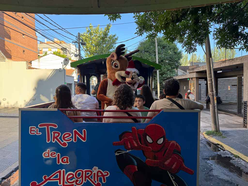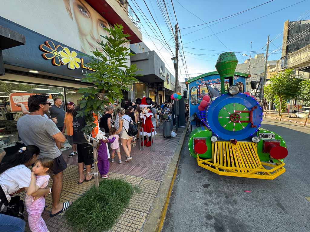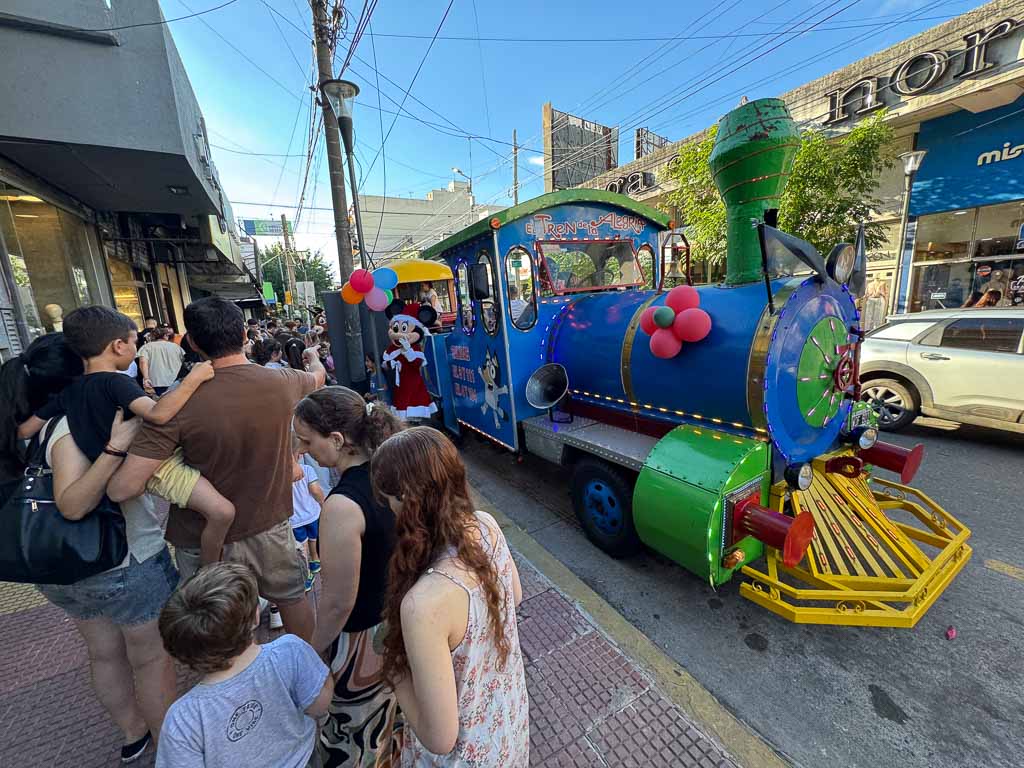 Durante la tarde, el trencito circuló por distintas calles céntricas, acompañando la actividad comercial y sumando una intervención visible en el espacio urbano en los días previos a las fiestas.