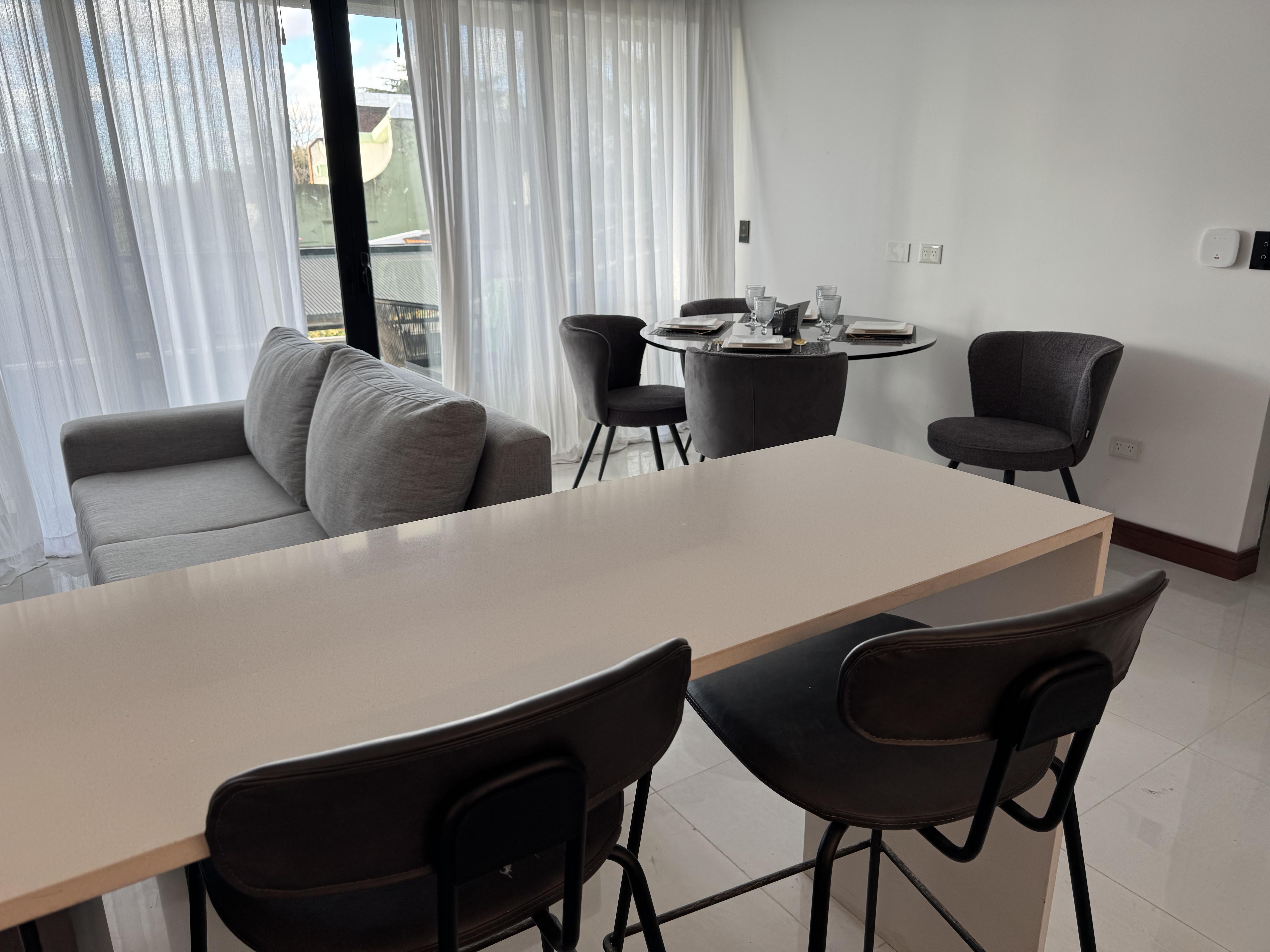 El edificio cuenta con 17 unidades de dos y tres ambientes, distribuidas en planta baja y pisos superiores. Varias de ellas incluyen patios privados con parrilla y mini piscina, mientras que las unidades en altura disponen de balcones corridos. Todas incorporan piso radiante individual, ventanas DVH, termotanques solares y equipamiento smart, con sistemas de domótica que permiten controlar iluminación, climatización, cortinas y cerraduras.