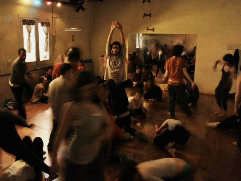 “Uno llega, se saca los zapatos, deja sus objetos personales. Antes generábamos un espacio musical de improvisación, pero ahora estamos implementando el silencio desde el inicio, y luego se agrega el estímulo musical. La gente entra y el que no sabe de qué se trata, duda, no sabe qué hacer. Su cuerpo en el vacío. El que tiene conocimiento empieza a estirar, a moverse. Después aparece el juego, comunicarse con los otros, y la improvisación en sí. Se empieza a incorporar la música, y a artistas del oeste, que trabajan la improvisación”, explicó la entrevistada.